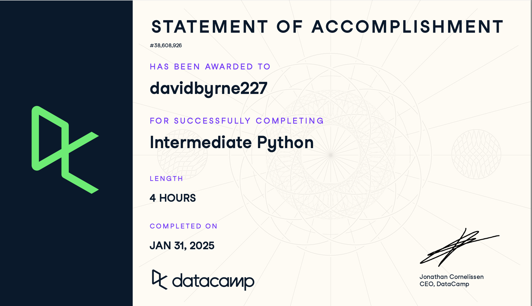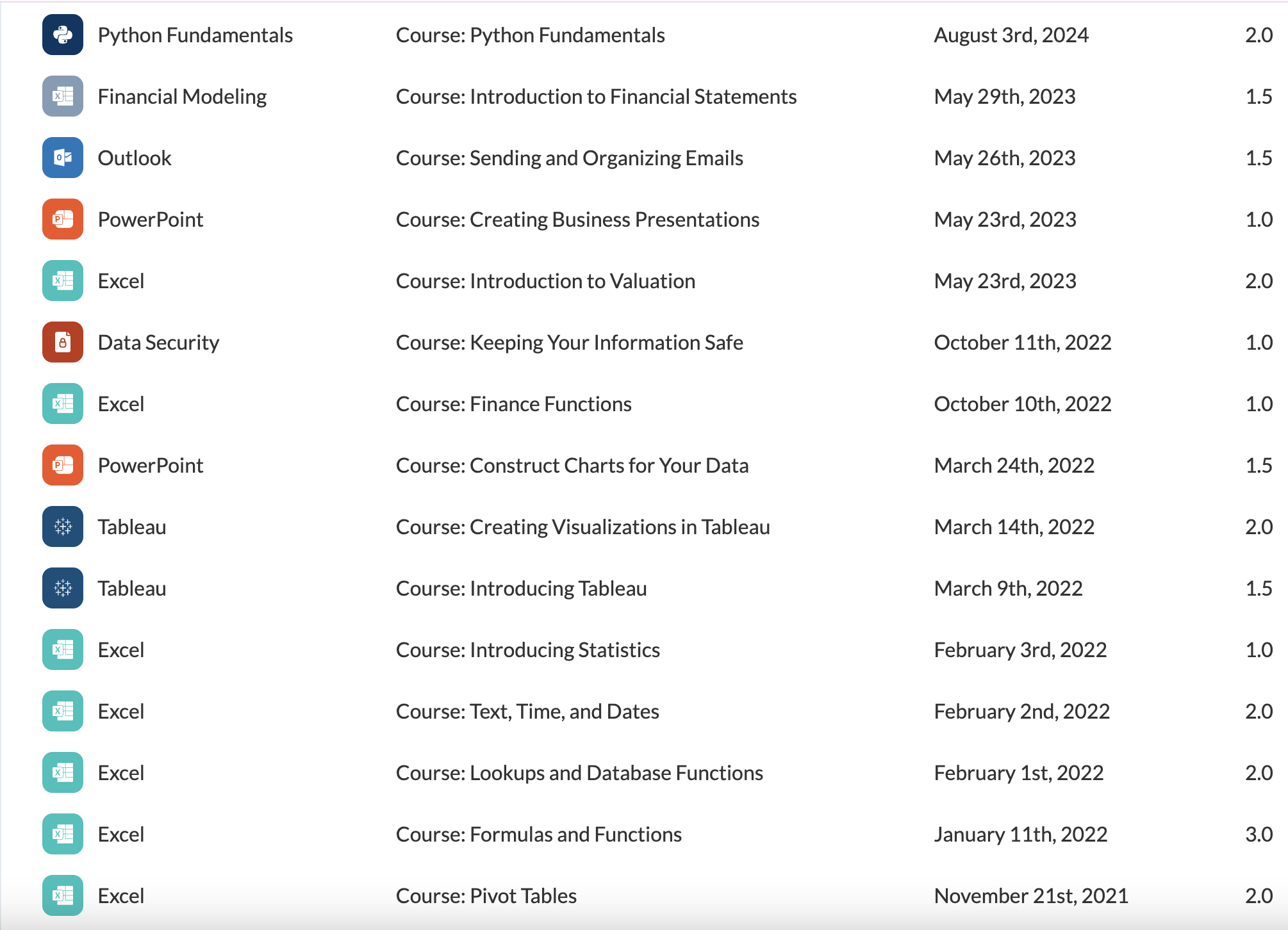 Here are some selected certifications that represent a broad mix of my technical and analytical development: